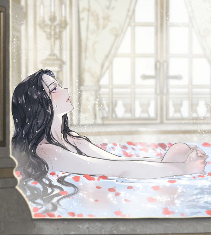 Lacilia, que se había quitado toda la ropa mojada, se puso una toalla alrededor del cuerpo y se metió en la bañera.
