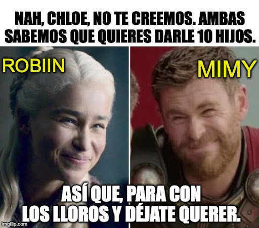 Mimy: y por eso te odio, Chloe. Pero nah, Raymond seguirá erre que erre hasta que seas suya ya verás… y tu castigo sera que por las noches un “No puedo más estoy cansada, es demasiado” no valga… ( ¬‿¬) Sin piedad, como la que tu tuviste XD.